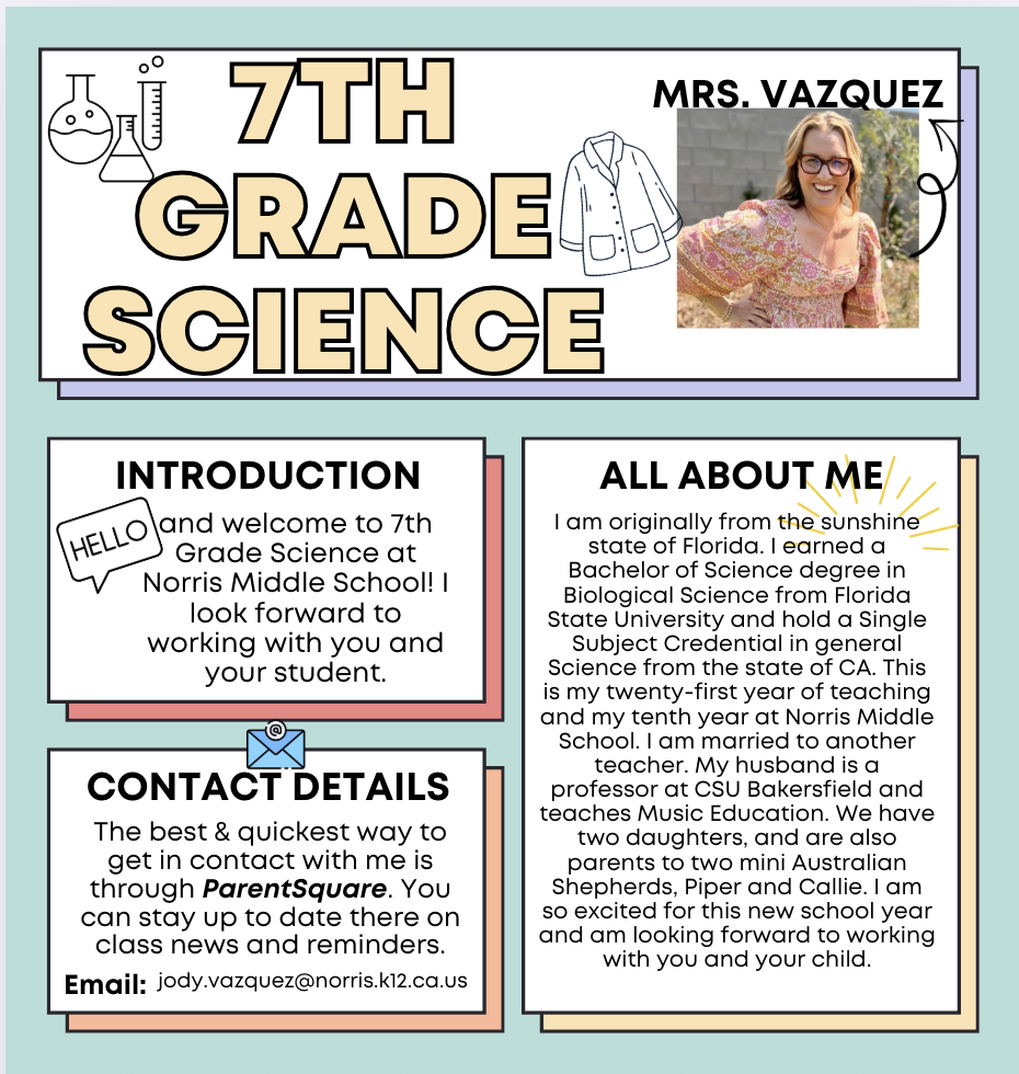 Mrs. Jody Vázquez » Norris Middle School/Science